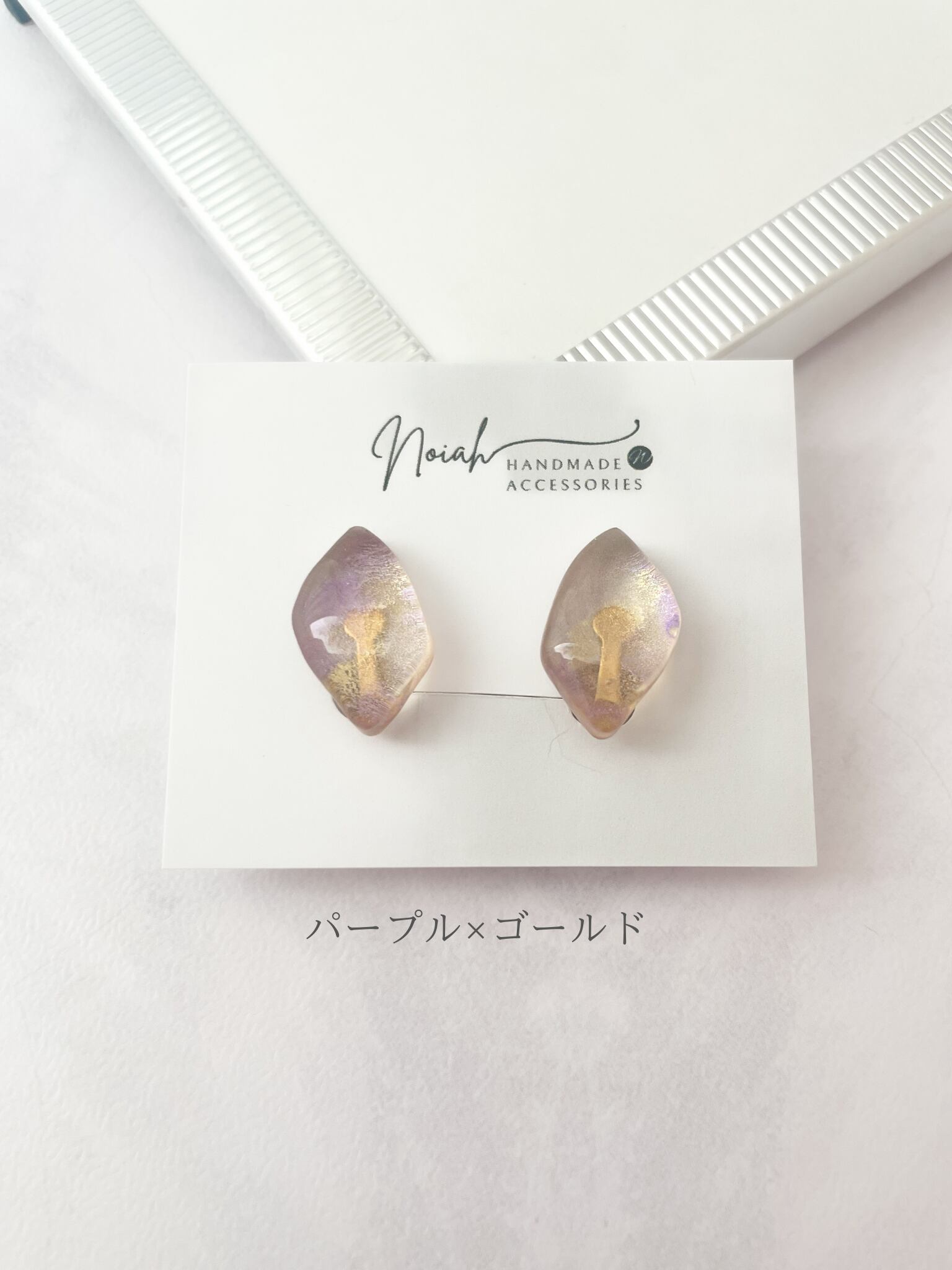 ピアスはサージカルステンレスで、バタフライキャッチとシリコンキャッチの2種類をお付けします。